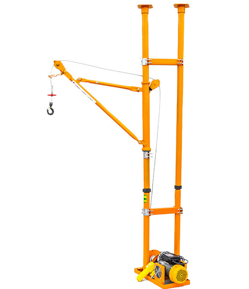 负责施工的工作人员在吊大玻璃时会事先在业主室内固定一个小型的室内香蕉视频免费看污,香蕉视频免费看污的顶杆顶在房顶上,底座直接和地面接触,借助着房顶和地面之间的夹持力使其保持稳固状态,同时,在电机的启动下就能利用钢丝绳把楼下的玻璃吊装到指定安装位置。